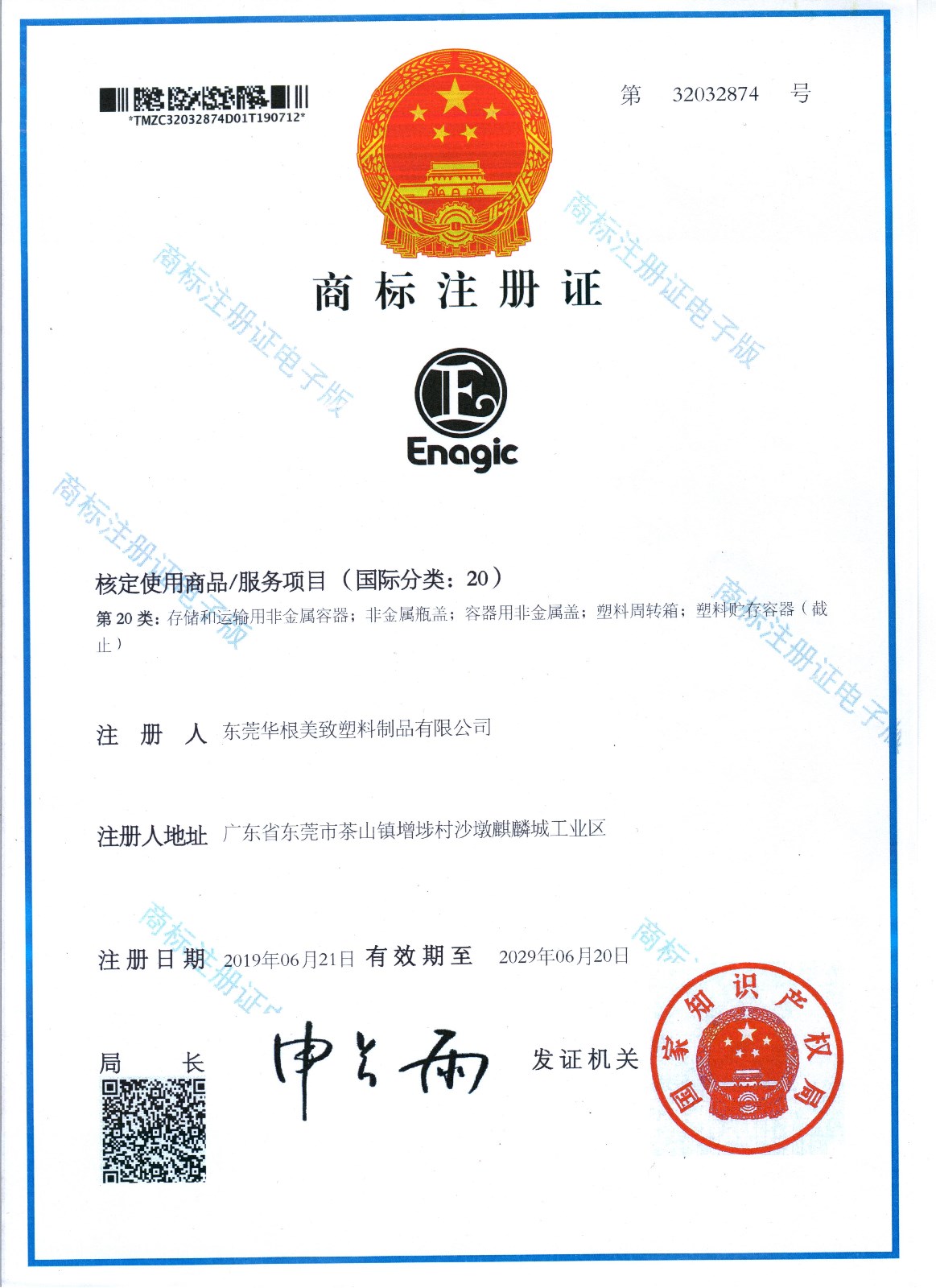 • 商標(biāo)注冊(cè)證書